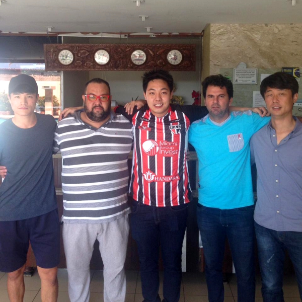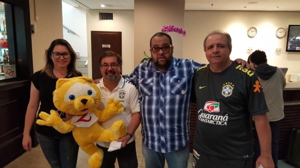 Nilton Ramos, Delegado Jorgão, Joseph Curi Qatar Airways, Milton Cruz, Juiz da Vara do Trabalho Lúcio com a camisa do Ferroviário de Fortaleza.